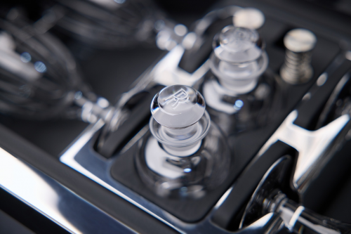 头枕上的劳斯莱斯“双R”标志与外观涂装颜色相呼应,后排扶手背处配装冰箱,并配有一对刻有客户首字母缩写的水晶香槟酒杯与酒瓶。