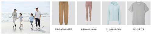 优衣库生活运动系列:畅享生活,动出健康。高弹·透气*2·防晒·速干*1 四大高功能面料,让生活动出健康能量。